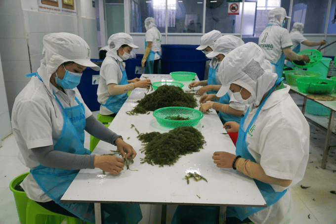 Công nhân sơ chế rong nho. Ảnh: Bùi Toàn