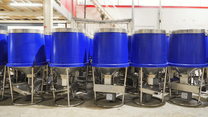 Máy tự động cho tôm ăn có sức chứa từ 30 - 50kg thức ăn, tiết kiệm đáng kể thời gian cho ăn. Ảnh: Kim Anh.