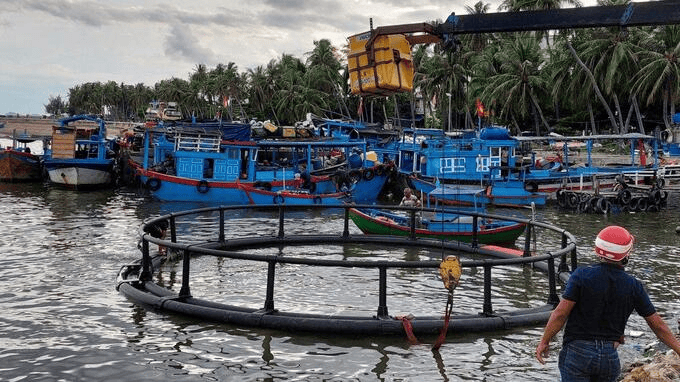 Hay anh Trần Ngọc Sỹ ở xã Vạn Lương (Vạn Ninh) vừa qua cũng đã nhân rộng thêm 1 lồng tròn HDPE (với đường kính 10m) sau khi được dự án hỗ trợ. Anh Sỹ cho biết sang năm 2023, sẽ tiếp tục đầu tư thêm lồng nuôi HDPE, từ đó giảm dần lồng gỗ để nuôi biển bền vững hơn.
